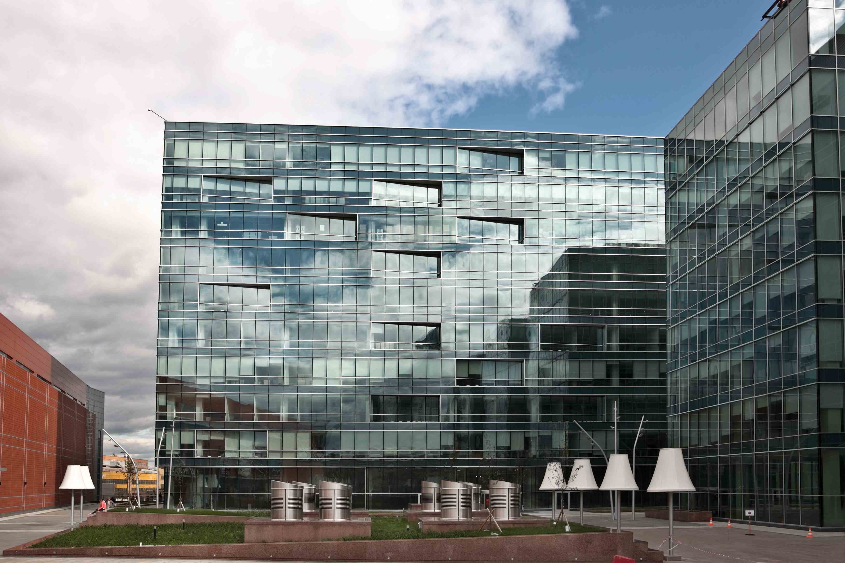 Фактурные фасады офисов выполнены в городском стиле хай-тек. Офисы обращены к выходу из метро, создавая архитектурный ансамбль со стороны Ленинградского шоссе